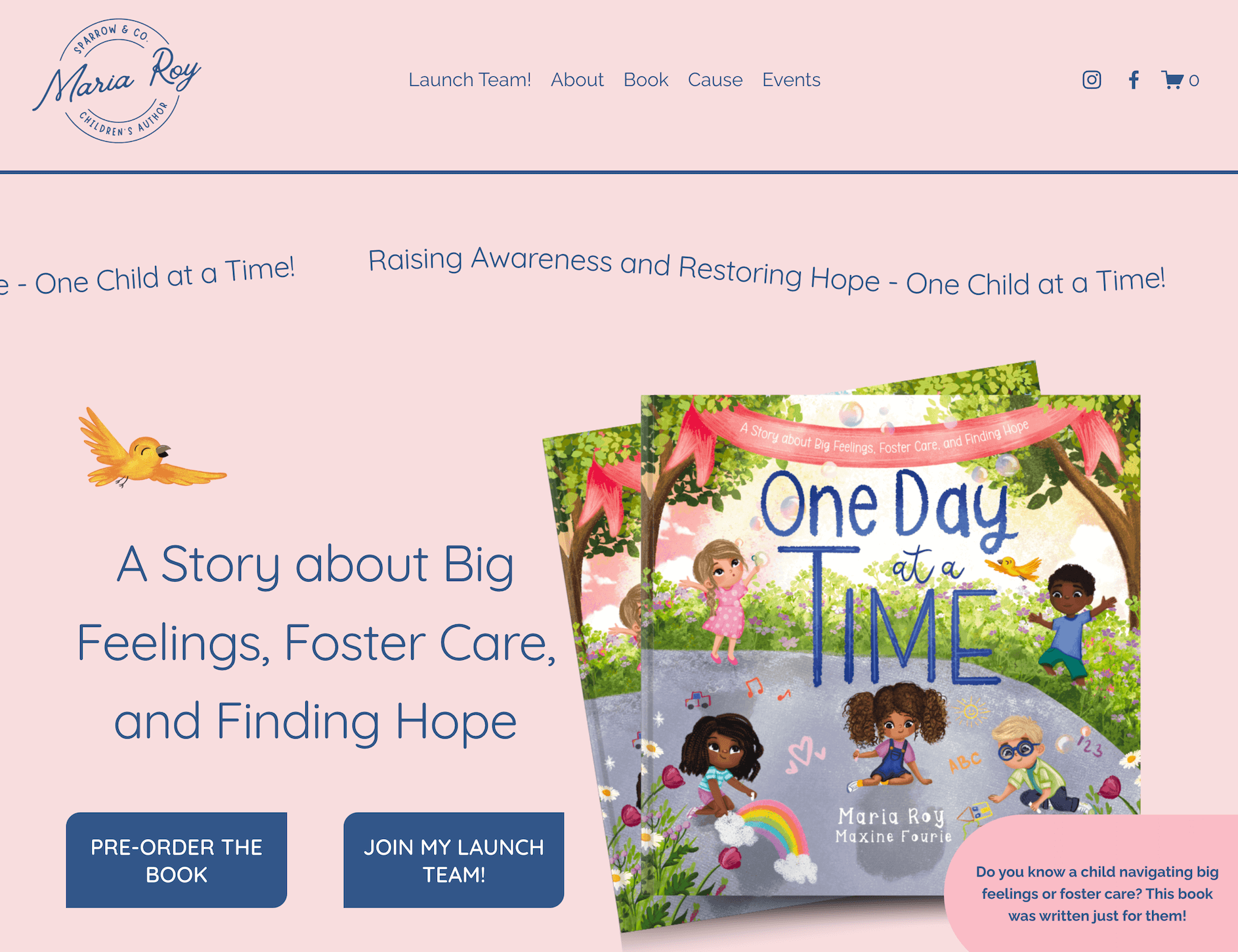 Now, let’s see a few examples of this rule in action. First off is picture book author Maria Roy. Not only is she a published author, but she also has a related non-profit and her own publishing house. If you click around sparrowco.org, you’ll see there is a lot of information on her site.